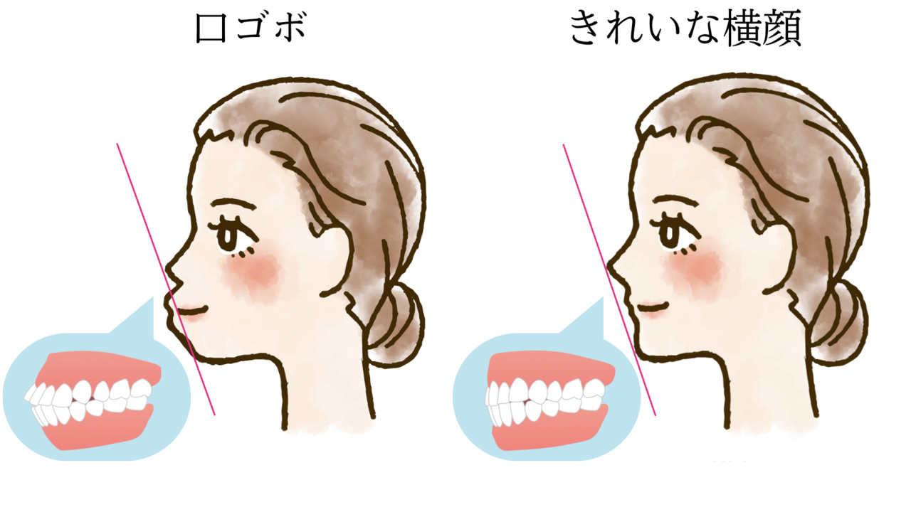 口ゴボとは唇を閉じたときに横から見ると、口元が突き出し、鼻と同じくらいに盛り上がっている状態。