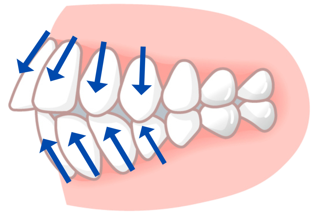 その結果、スペースが十分に確保できない状態で歯を並べることになり、前歯が前方に突き出してしまうことがあるのです。