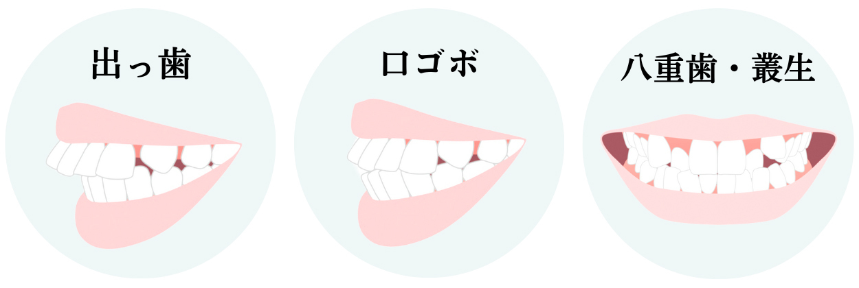 上だけでなく下の前歯も飛び出した口ゴボや、歯がガタガタの叢生(乱杭歯)、八重歯を併発している患者さまも少なくありません。