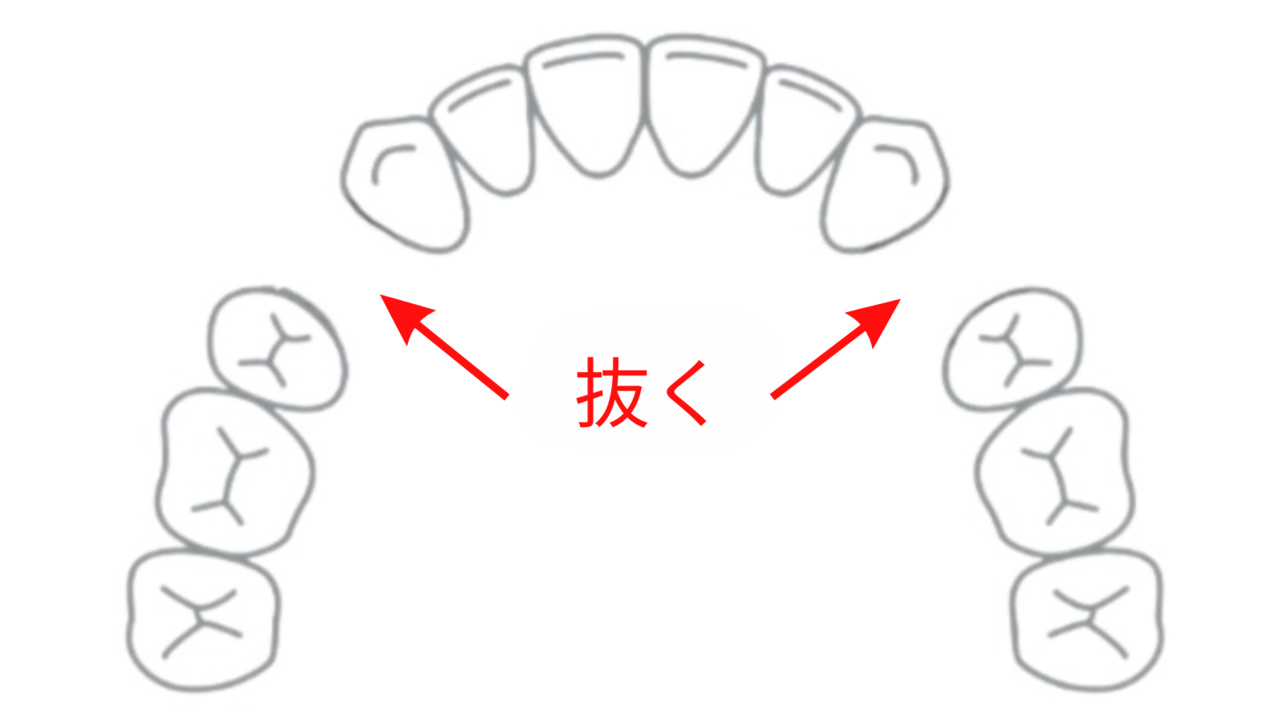 具体的には前から4番目の歯を抜いて、前歯を並べるスペースを生み出します。
