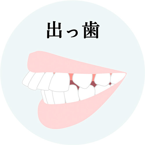 上顎前突(じょうがくぜんとつ)とも呼ばれる出っ歯は、上の前歯が前方に飛び出して見える症状。